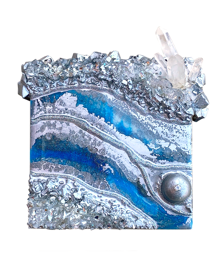 Geode Two:Available 10x10in Wood Panel - Resin Natural quartz points and 9mm CZ